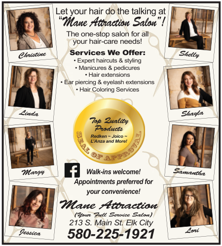 Located at 213 S. Main St., Elk City, Mane Attraction welcomes walk-ins, though appointments are recommended for convenience. Call 580-225-1921 to schedule your visit and let your hair do the talking!