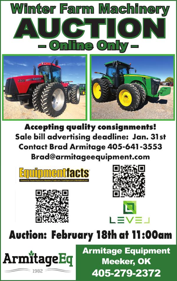 For additional details or inquiries, you can reach Armitage Equipment at 405-279-2372. Don't miss out on this opportunity to bid on high-quality farm machinery and enhance your operations.