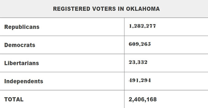 More information, including voter registration statistics and election resources, is available at oklahoma.gov/elections.