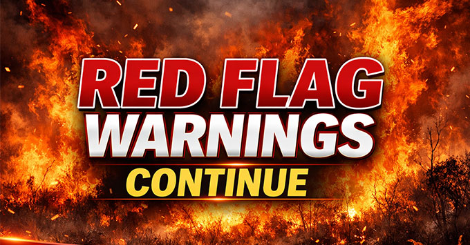 Forecast conditions include southwest winds of 15 to 25 miles per hour with gusts up to 40 miles per hour Wednesday, shifting west to northwest Thursday with similar gusts. Relative humidity is expected to drop as low as 10 to 15 percent Wednesday and 7 to 12 percent Thursday, with temperatures reaching up to 75 degrees Wednesday and 60 to 70 degrees Thursday.