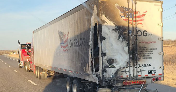 The crash occurred at 12:04 p.m. Troopers reported that both vehicles were traveling eastbound on I-40 when one vehicle struck a commercial motor vehicle from the rear. After the impact, the vehicle caught fire.
