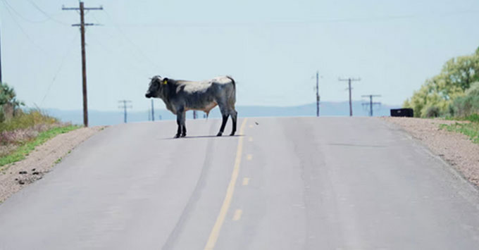 A second vehicle traveling northbound, driven by Elisha M. Robinson, 51, of Sentinel, then struck the bull as it lay in the roadway.