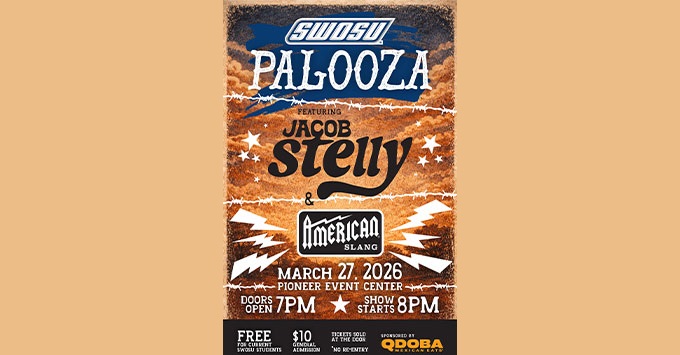 Weatherford, OK – Southwestern Oklahoma State University (SWOSU) will host SWOSU Palooza presented by Qdoba on Friday, March 27, 2026, in the Pioneer Events Center on the SWOSU campus in Weatherford. Doors will open at 7 p.m., and the concert will begin at 8 p.m.