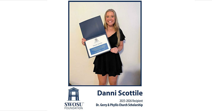 Weatherford, OK – Southwestern Oklahoma State University (SWOSU) has named Danni Sottile of Elk City, Oklahoma as the Dr. Gerry & Phyllis Church Scholar for Academic Year 2025-2026.