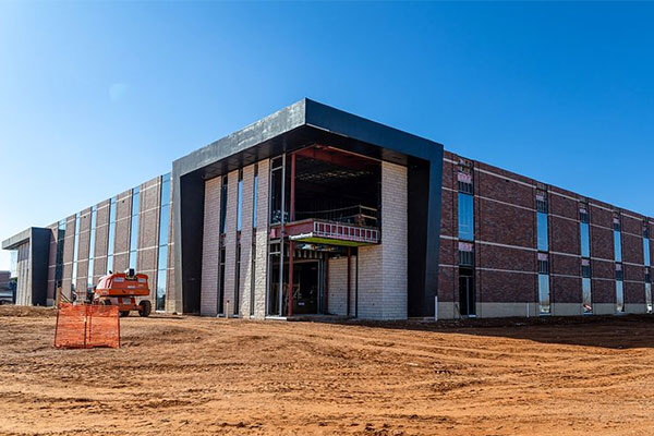 Construction of the Hodge Center for Pharmacy and Rural Health remains on schedule and on budget, with an estimated opening in early 2026. The installation of glass is expected to be completed by mid-February, allowing the building to be fully enclosed and minimizing weather-related delays as work continues.