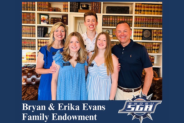 The Bryan & Erika Evans Family Endowment is stewarded by the SWOSU Foundation, Inc. An independent institutionally-related charitable entity headquartered on the SWOSU Campus in the historic Burton House, the Foundation was established in 1977 to promote philanthropy, award scholarships and distribute funds to support the activities and programs of SWOSU. For more information, please contact the SWOSU Office of Institutional Advancement at 580-774-3267 or visit www.SWOSUFoundation.com.