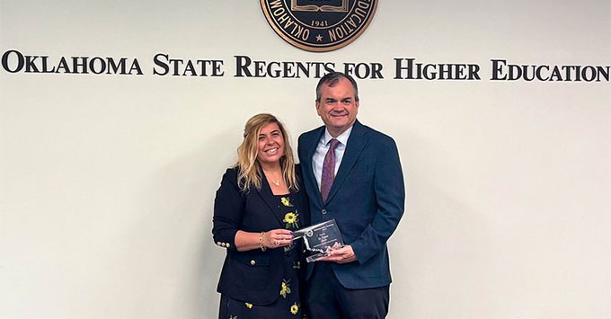 This prestigious award recognizes outstanding faculty, staff, and administrators across Oklahoma’s 25 public colleges and universities who demonstrate exemplary “leadership, innovation, collaboration, and results that advance online and hybrid education have made exceptional contributions to online and blended learning in the State of Oklahoma.”