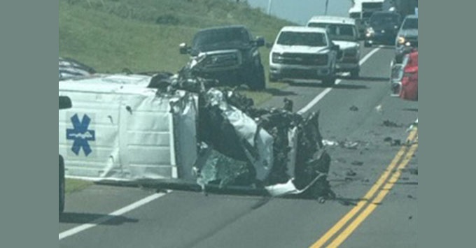 Troopers said 55-year-old Jeffery W. Jones of Moore was driving an ambulance eastbound on U.S. 270 around 3:15 p.m. near E770 Road when his vehicle crossed the centerline. Because of construction, westbound traffic had been diverted into the inside eastbound lane. The ambulance struck a westbound tractor-trailer and then rolled onto its passenger side, coming to rest in the roadway.
