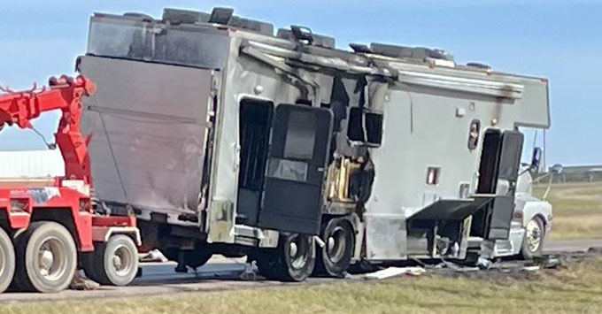 According to Elk City Fire Chief Kyle Chervenka, his department was called to assist at around 8:20 a.m. When crews arrived, they found the RV fully engulfed in flames.