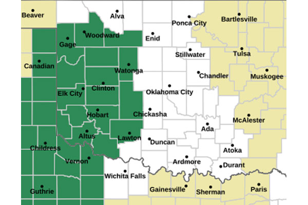 A flood watch is now in effect for several counties in western Oklahoma, including Beckham, Custer, Dewey, Ellis, Greer, Harmon, Jackson, Kiowa, Roger Mills, and Washita, extending through Friday evening. Heavy rainfall is forecasted over the next two days, with the National Weather Service warning of possible flooding due to excessive rain.