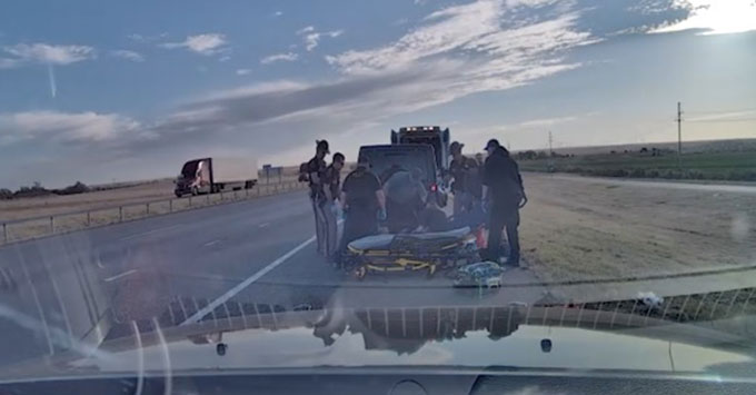 Custer County, OK – Oklahoma Highway Patrol is crediting the quick actions of Trooper Eric Burchett with saving a man’s life after a violent incident along Interstate 40 near Clinton on the morning of November 16.