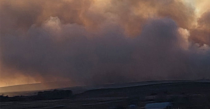 Roger Mills County, OK – A wildfire burning near Kiowa Road in Roger Mills County scorched more than 300 acres of pasture land Monday afternoon before crews were able to bring it largely under control.