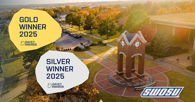 Weatherford, OK – The Southwestern Oklahoma State University (SWOSU) Office of Public Relations and Marketing has won three honors in the 21st Annual Davey Awards, an international creative competition that recognizes outstanding work by in-house teams, small agencies, and independent creators. The competition is judged by members of the Academy of Interactive and Visual Arts (AIVA), who evaluate entries for creativity, quality, and effectiveness in communication.